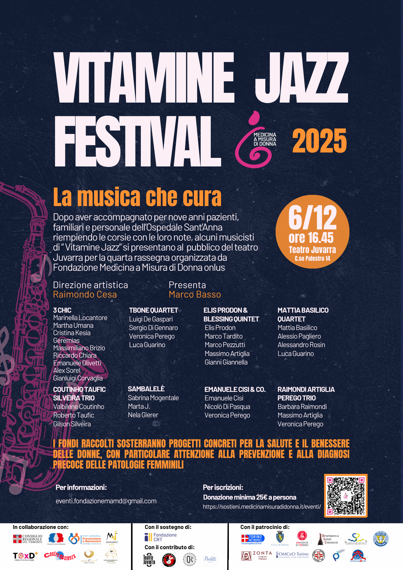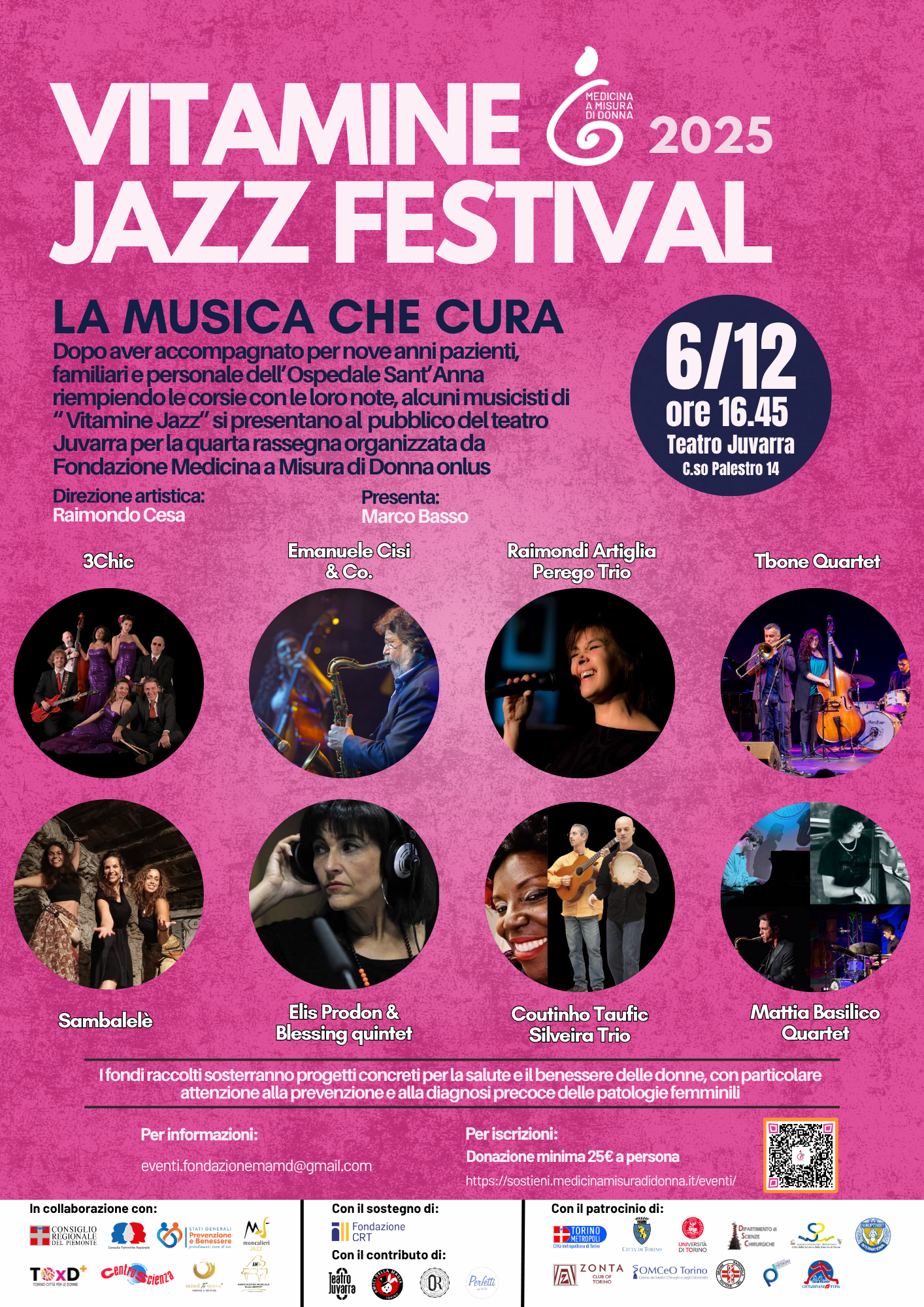 Il 6 dicembre 2025 alle ore 16:45 la Fondazione Medicina a Misura di Donna organizza la quarta edizione del Vitamine Jazz Festival – la Musica che cura al Teatro Juvarra di Torino.